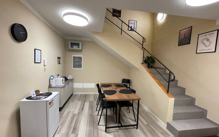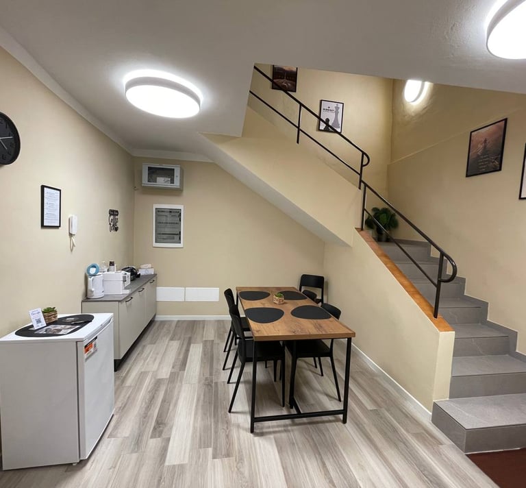All'interno di Casa Alone troverete una stanza condivisa dotata di tavolo e sedie, dove poter consumare la colazione, con macchina del caffè e bollitore per tè e tisane a disposizione 24h.