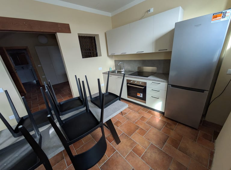 La suite è dotata di cucina con forno, fornelli ad induzione, frigorifero e lavastoviglie.